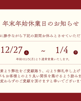 年末年始休業のお知らせ